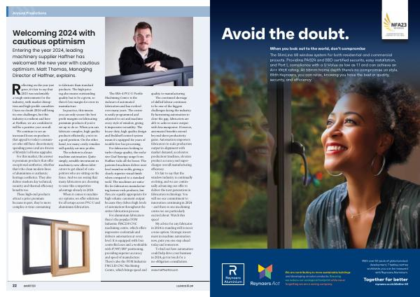 Reflecting on the year just gone , it ’ s fair to say that 2023 was undeniably a tough environment for the industry , with market disruption and high-profile casualties . I have no doubt 2024 will bring its own challenges , but this industry is resilient and here at Haffner , we are confident it will be a positive year overall . We continue to see an increased focus on products that appeal to today ’ s consumers who still have discretionary spending power and are drivers of lifestyle led home upgrades . For this market , the answer is premium products that offer exceptional aesthetics , whether that ’ s the clean modern lines of aluminium or authentic heritage aesthetics . They also deliver modern day technical , security and thermal efficiency benefits too .