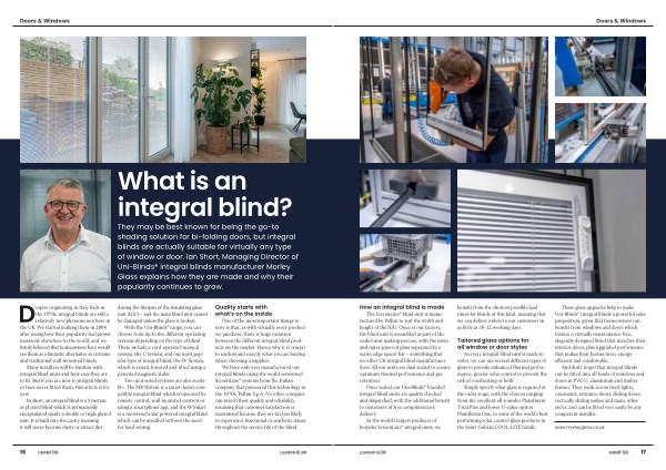 They may be best known for being the go-to shading solution for bi-folding doors , but integral blinds are actually suitable for virtually any type of window or door . Ian Short , Managing Director of Uni-Blinds ® integral blinds manufacturer Morley Glass explains how they are made and why their popularity continues to grow .