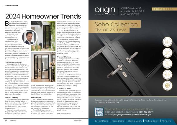 Ben Brocklesby , Director at Origin , the UK ’ s leading manufacturer of aluminium windows and doors , discusses homeowner priorities for the new year , revealing how glazing professionals can use these insights to succeed in 2024 .