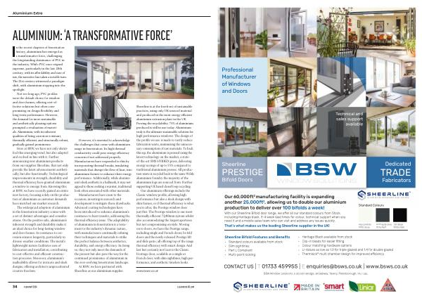 Here at BSW , we have not only identified this emerging trend , but also adapted and evolved in line with it . Further announcing new aluminium products from our supplier Sheerline , that not only provide the latest advancements aesthetically , but also functionally . Technological improvements in strength , durability and thermal efficiency have granted aluminium a window to emerge from . Knowing this , at BSW , we have recently gained an entire new factory , focusing solely on the production of aluminium as customer demands have matched our market research .