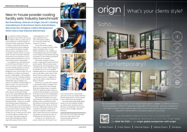 The next generation of door is here . The new Origin OB-36 + system is available in 2 different collections . The Soho aesthetic is perfect for replicating a sought-after steel-look design , whilst the Contemporary style offers an elegant way to maximise light levels in a home . Both systems are 2025 Future Homes compliant for thermal efficiency and feature sightlines of just 36mm .