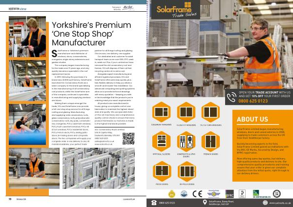 In 2019 , following the purchase of a brand new 22,000 sq . ft factory , SolarFrame launched SOL Conservatory Roofs as a sister company to the brand specialising in the manufacturing of all conservatory roof products , whilst the SolarFrame arm of the company continues to specialise in manufacturing and supplying windows and doors .