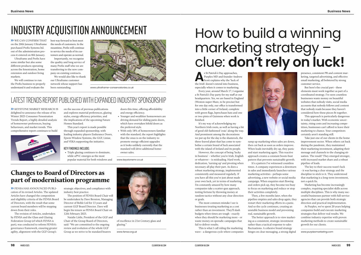» KEYSTONE MARKET RESEARCH IS delighted to announce the release of its Winter 2025 Consumer Fenestration Trends Report , a highly detailed analysis of homeowner preferences , buying behaviours , and market trends . This comprehensive report continues to build on the success of previous publications and explores material preferences , glazing styles , energy efficiency priorities , and the implications of the upcoming Future Homes Standard .