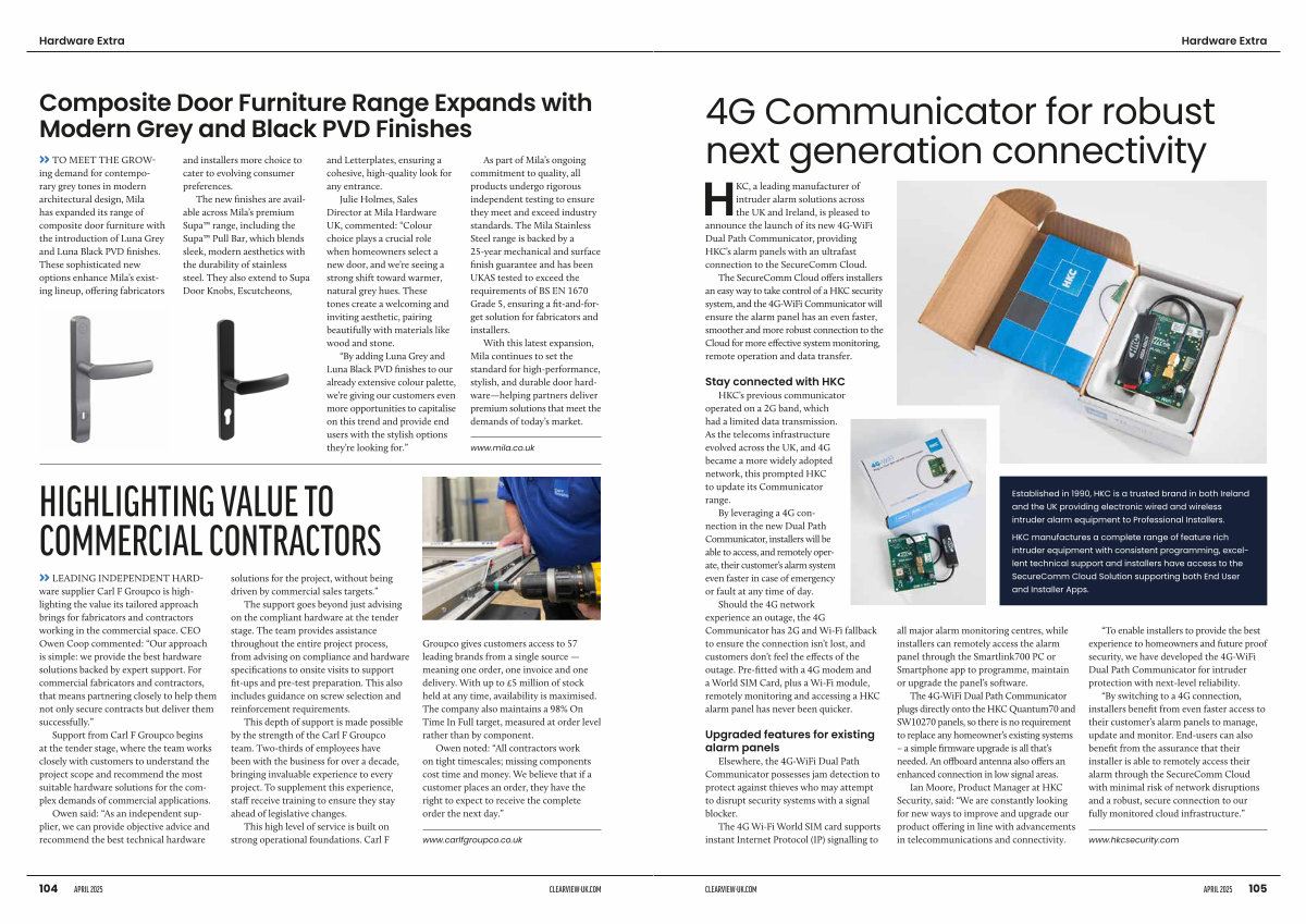 » TO MEET THE GROWing demand for contemporary grey tones in modern architectural design, Mila has expanded its range of composite door furniture with the introduction of Luna Grey and Luna Black PVD finishes. These sophisticated new options enhance Mila’ s existing lineup, offering fabricators |