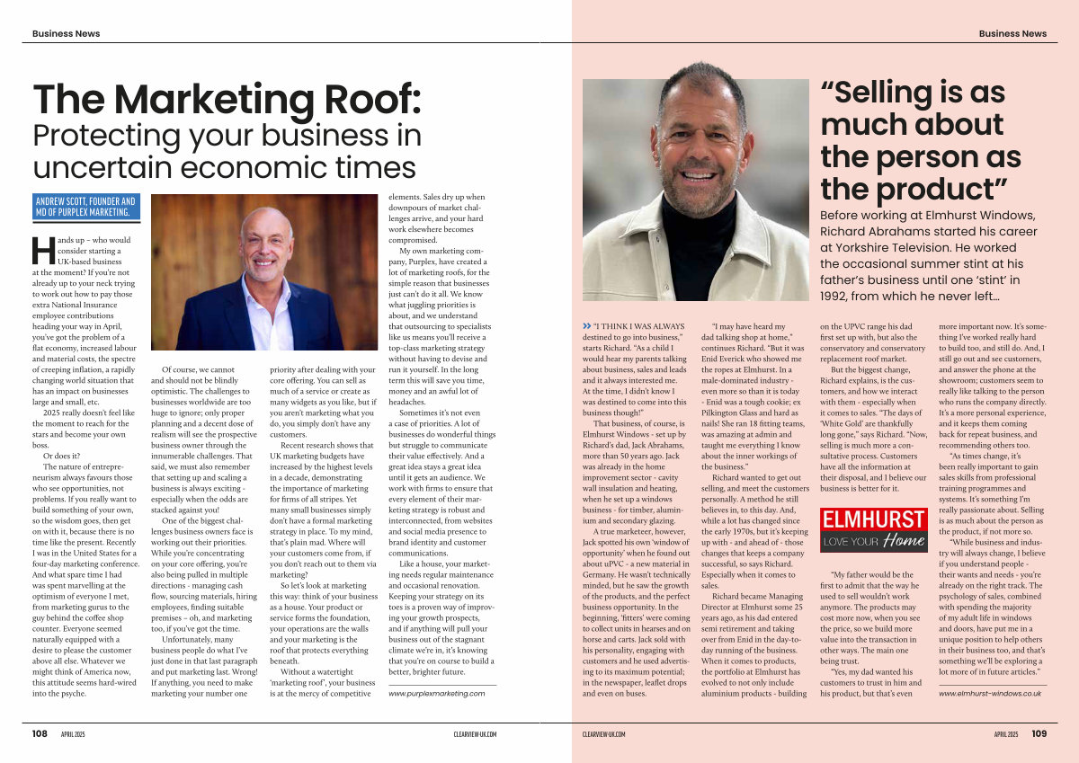 My own marketing company, Purplex, have created a lot of marketing roofs, for the simple reason that businesses just can’ t do it all. We know what juggling priorities is about, and we understand that outsourcing to specialists like us means you’ ll receive a top-class marketing strategy without having to devise and run it yourself. In the long term this will save you time, money and an awful lot of headaches.