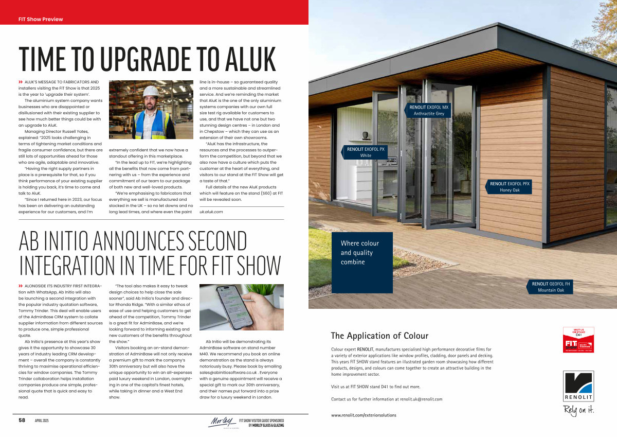 Colour expert RENOLIT, manufactures specialised high performance decorative films for a variety of exterior applications like window profiles, cladding, door panels and decking. This years FIT SHOW stand features an illustrated garden room showcasing how different products, designs, and colours can come together to create an attractive building in the home improvement sector.