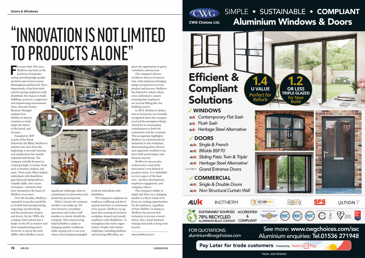 See more: www. cwgchoices. com / ssc Aluminium enquiries: Tel. 01536 271948