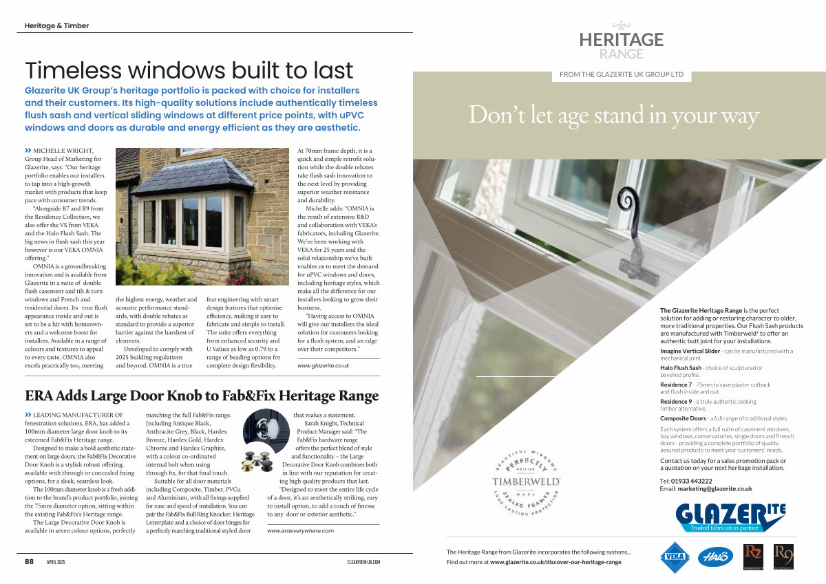 The Heritage Range from Glazerite incorporates the following systems … Find out more at www. glazerite. co. uk / discover-our-heritage-range