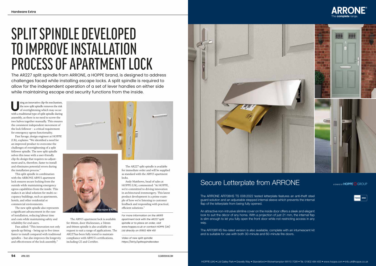 The AR708FHS fire-rated version is also available, complete with an intumescent kit and is suitable for use with both 30-minute and 60-minute fire doors.
