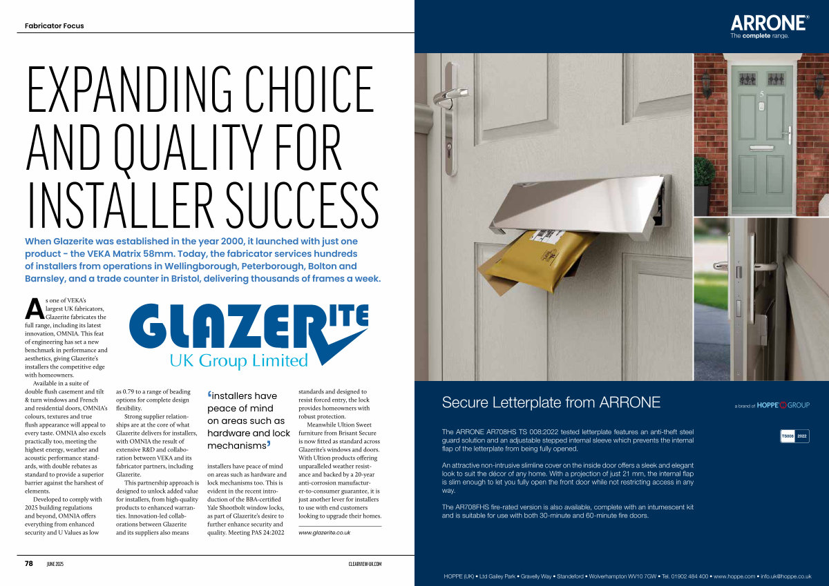 This partnership approach is designed to unlock added value for installers, from high-quality products to enhanced warranties. Innovation-led collaborations between Glazerite and its suppliers also means