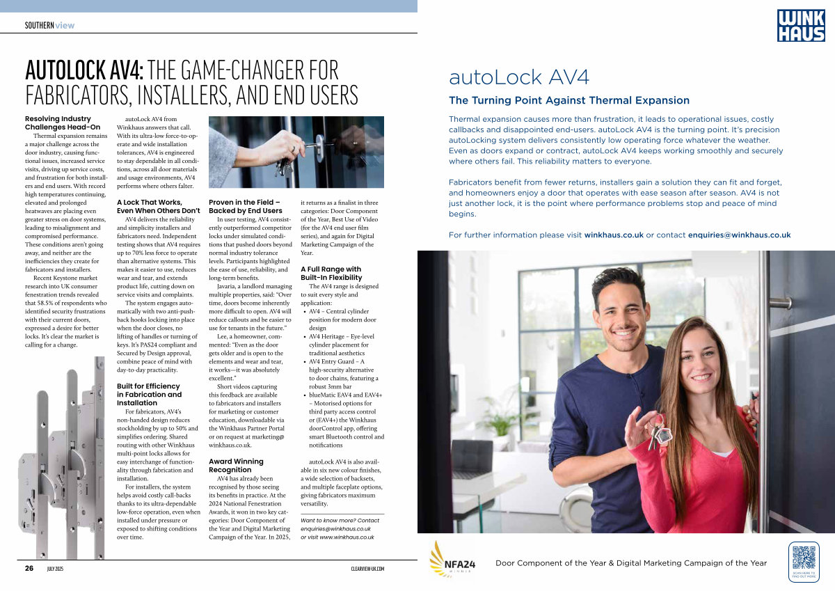 Fabricators benefit from fewer returns, installers gain a solution they can fit and forget, and homeowners enjoy a door that operates with ease season after season. AV4 is not just another lock, it is the point where performance problems stop and peace of mind begins.