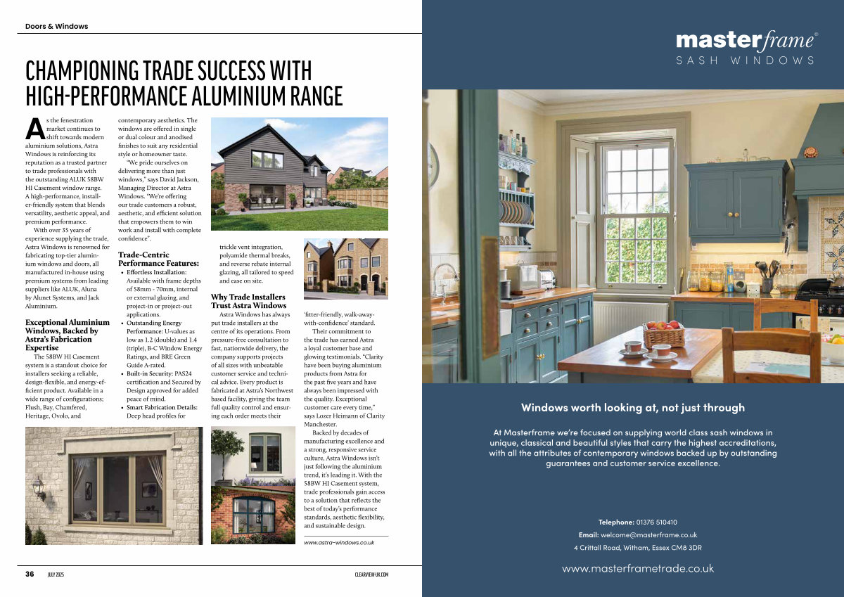 Their commitment to the trade has earned Astra a loyal customer base and glowing testimonials.“ Clarity have been buying aluminium products from Astra for the past five years and have always been impressed with the quality. Exceptional customer care every time,” says Lozer Heimann of Clarity Manchester.
