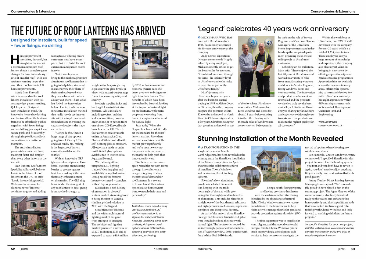 “ But it was key to us to bring to the market a premium aluminium roof lantern that is going to help fabricators and installers grow their share of their markets beyond what they can achieve with what’ s already out there. That’ s what has fueled the innovation behind Iconiq. It offers a new innovative installation method that really speeds up time on site with its simple push-andfit mechanism, increasing the capacity of projects the trade can deliver.