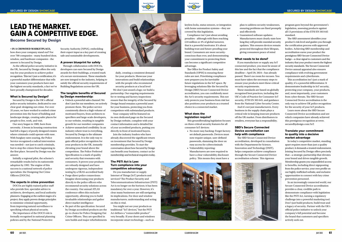 SECURED BY DESIGN SHOWCASE keyless locks, status sensors, or integration with home automation systems— they are covered by this legislation.