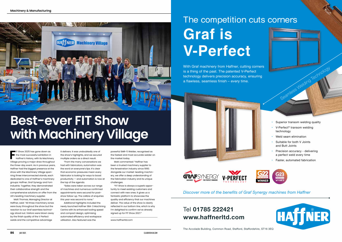 With Graf machinery from Haffner, cutting corners is a thing of the past. The patented V-Perfect technology delivers precision accuracy, ensuring a flawless, seamless finish – every time.