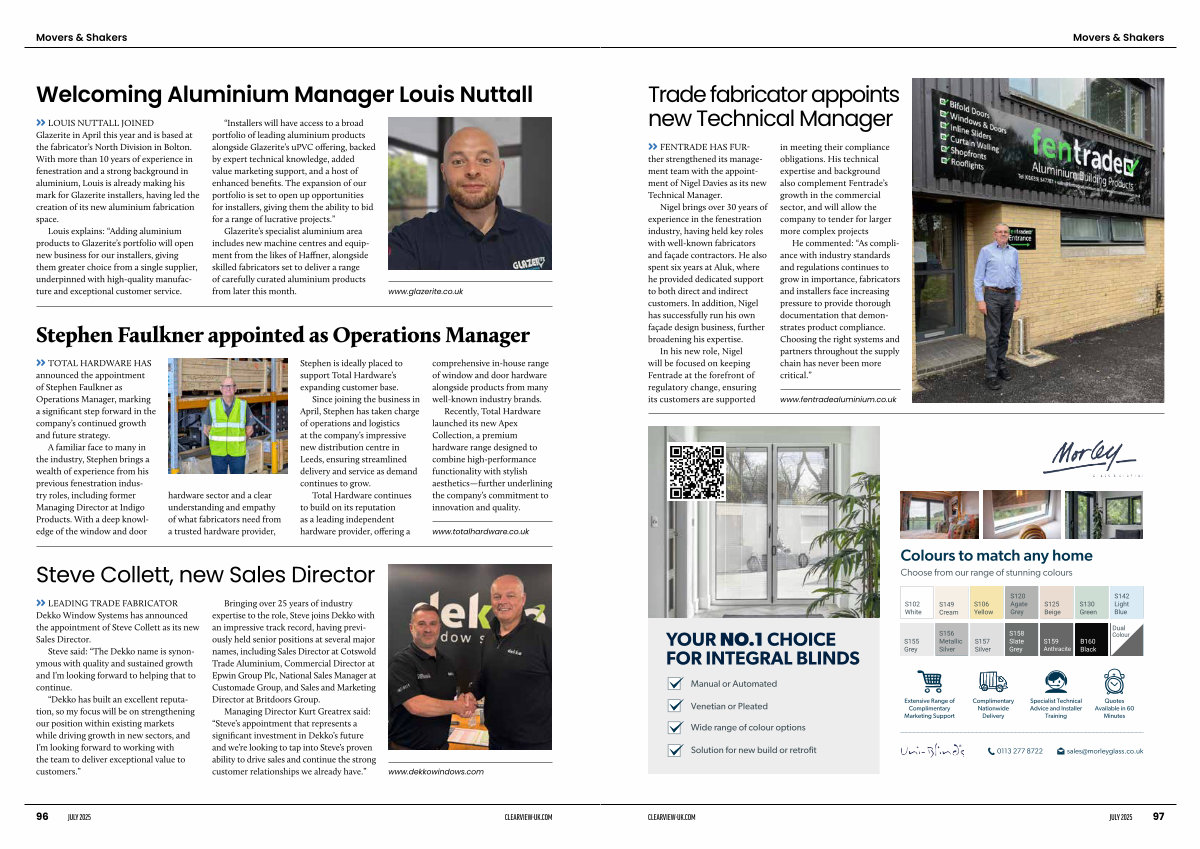 » LOUIS NUTTALL JOINED Glazerite in April this year and is based at the fabricator’ s North Division in Bolton. With more than 10 years of experience in fenestration and a strong background in aluminium, Louis is already making his mark for Glazerite installers, having led the creation of its new aluminium fabrication space.