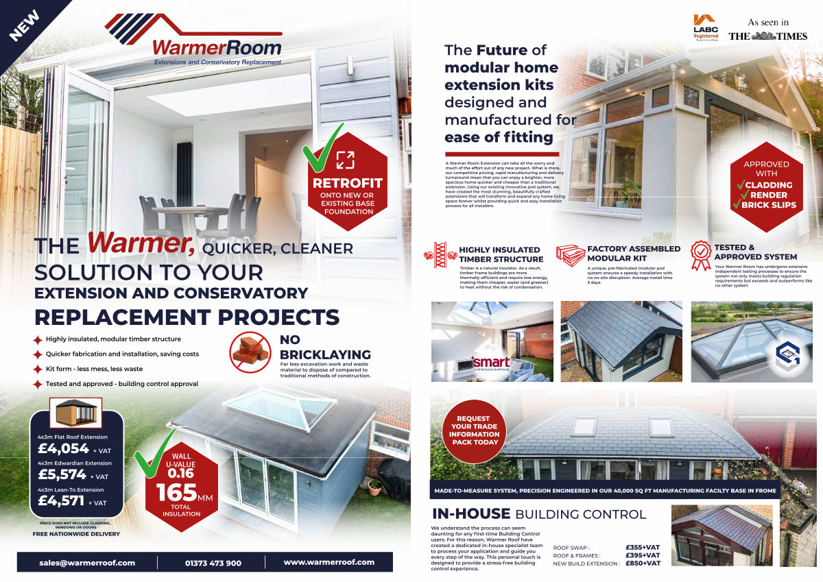 TOTAL INSULATION sales @ warmerroof. com 01373 473 900 www. warmerroof. com