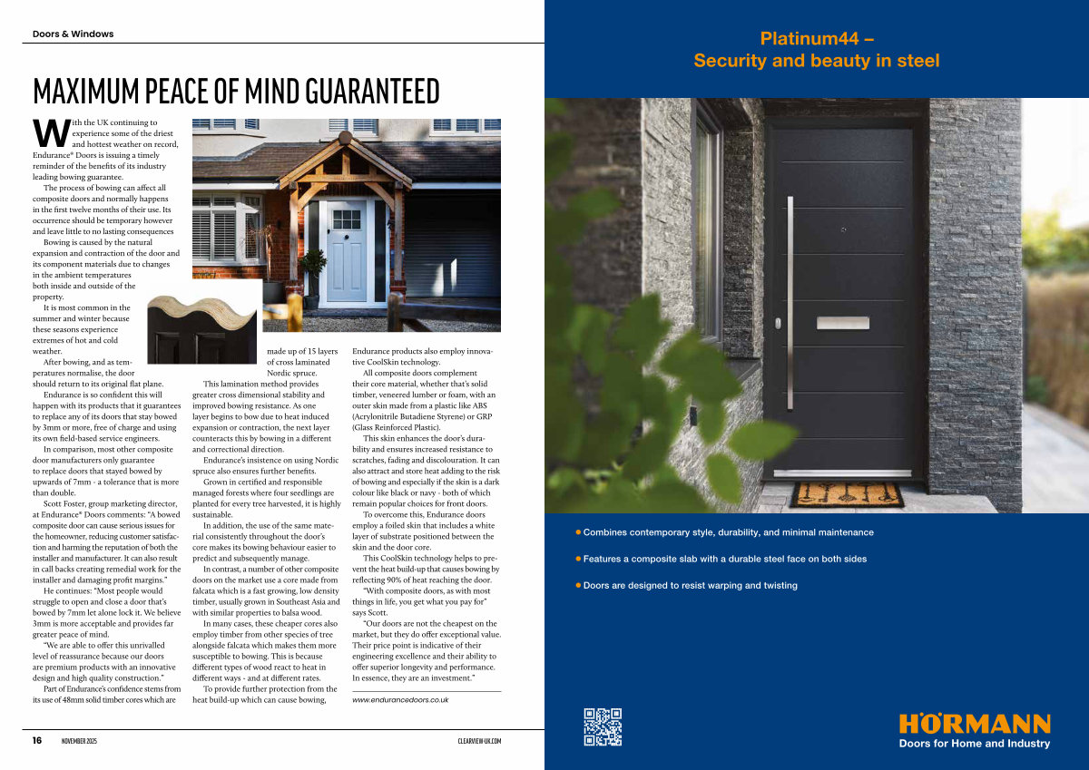 Endurance is so confident this will happen with its products that it guarantees to replace any of its doors that stay bowed by 3mm or more, free of charge and using its own field-based service engineers.