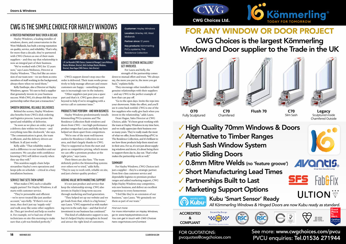 Dean Hague, Sales Director at CWG Choices, adds:“ It’ s been great working with the team at Hayley Windows in my time here, and we really appreciate their business over so many years. They’ ve really made the most of what we offer, from Kömmerling uPVC to The Residence Collection, and it’ s brilliant to see how those products help them stand out in their area. For us, it’ s not just about supplying windows and doors, it’ s about being there to support them day in, day out. That’ s what makes the partnership work so well.”