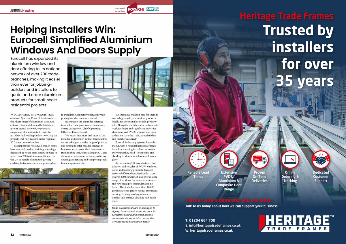 Eurocell has expanded its aluminium window and door offering to its national network of over 200 trade branches, making it easier than ever for jobbingbuilders and installers to quote and order aluminium products for small-scale residential projects.