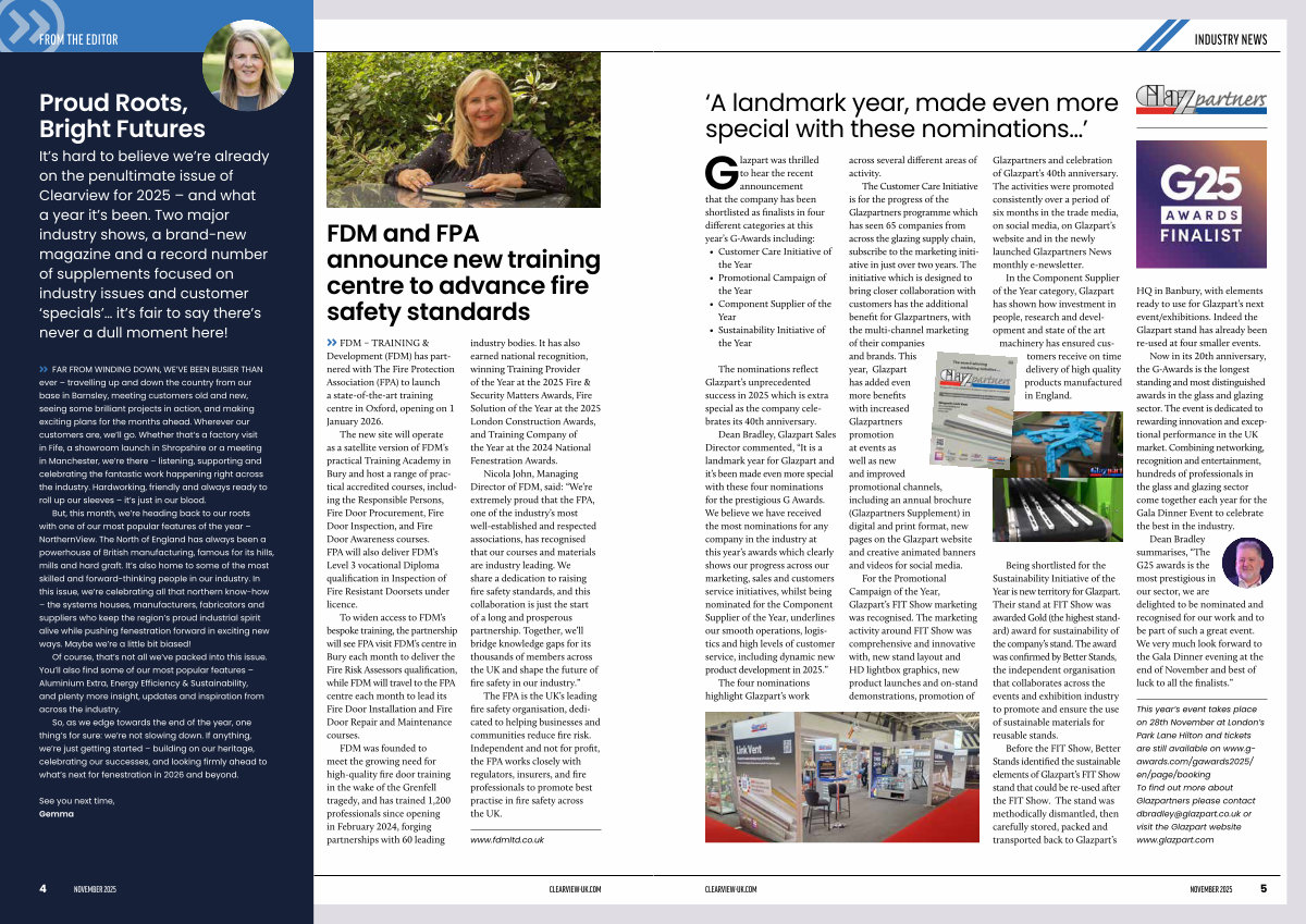 It’ s hard to believe we’ re already on the penultimate issue of Clearview for 2025 – and what a year it’ s been. Two major industry shows, a brand-new magazine and a record number of supplements focused on industry issues and customer‘ specials’… it’ s fair to say there’ s never a dull moment here!