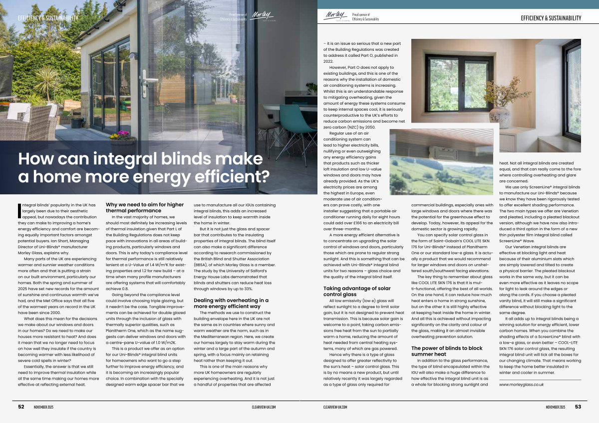 It all adds up to integral blinds being a winning solution for energy efficient, lower carbon homes. When you combine the shading effects of a ScreenLine ® blind with a low-e glass, or even better – COOL-LITE SKN 176 solar control glass, the resulting integral blind unit will tick all the boxes for our changing climate. That means working to keep the home better insulated in winter and cooler in summer.
