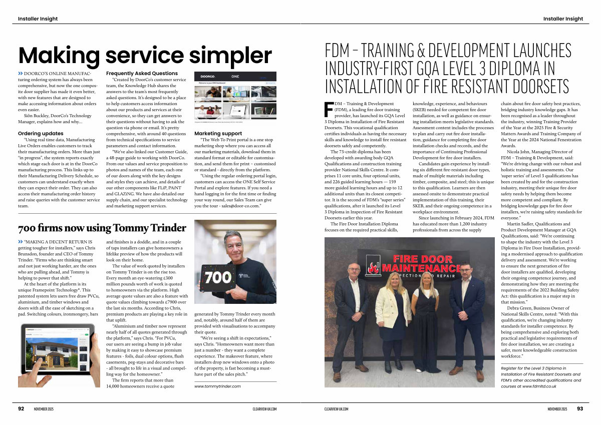 “ We’ re seeing a shift in expectations,” says Chris.“ Homeowners want more than just a number- they want a complete experience. The makeover feature, where installers drop new windows onto a photo of the property, is fast becoming a musthave part of the sales pitch.”
