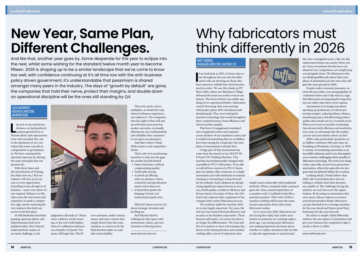 Looking ahead, I firmly believe that 2026 will reward fabricators who are willing to rethink what their factories are capable of. The challenges facing the industry are real, but so are the opportunities. By focusing on automation that saves space, labour, improves accuracy and elevates product finish, fabricators can put themselves in a stronger position for the year ahead and future-proof their businesses for the years beyond.
