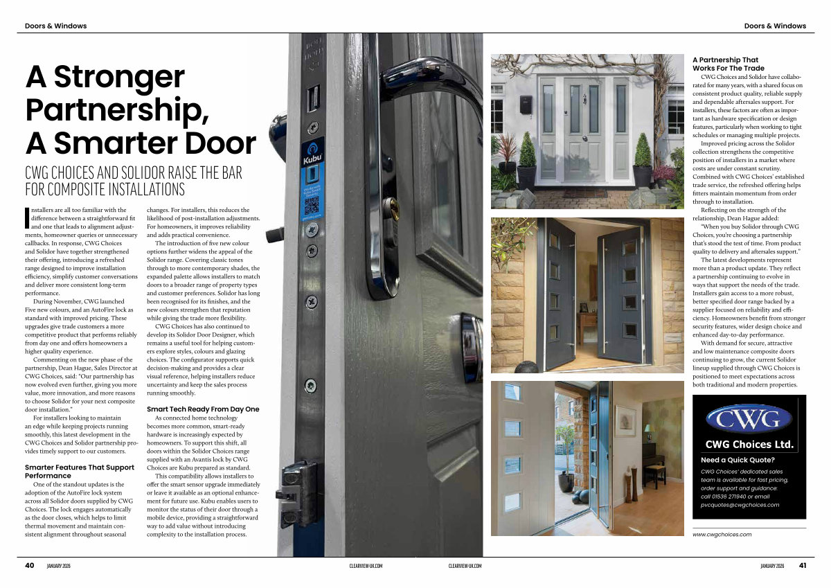 Installers are all too familiar with the difference between a straightforward fit and one that leads to alignment adjustments, homeowner queries or unnecessary callbacks. In response, CWG Choices and Solidor have together strengthened their offering, introducing a refreshed range designed to improve installation efficiency, simplify customer conversations and deliver more consistent long-term performance.