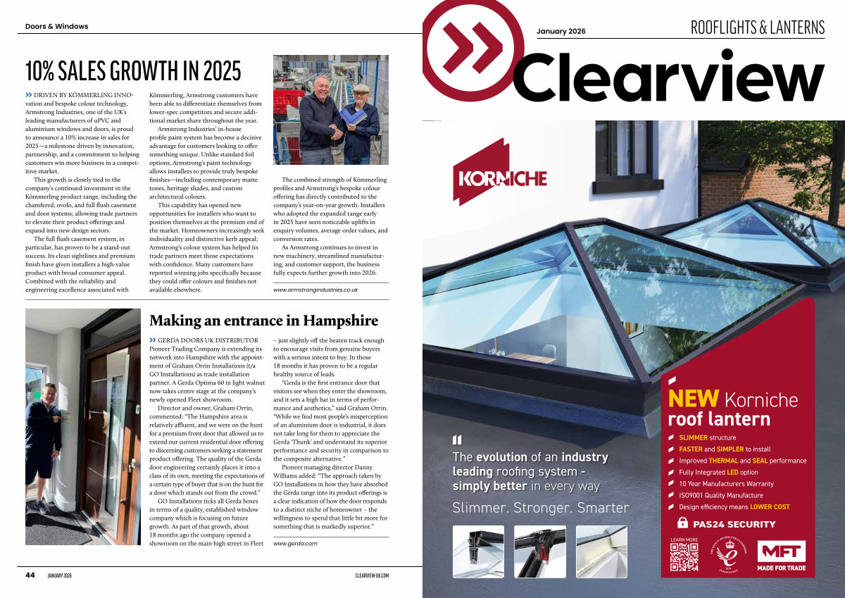 The combined strength of Kömmerling profiles and Armstrong’ s bespoke colour offering has directly contributed to the company’ s year-on-year growth. Installers who adopted the expanded range early in 2025 have seen noticeable uplifts in enquiry volumes, average order values, and conversion rates.