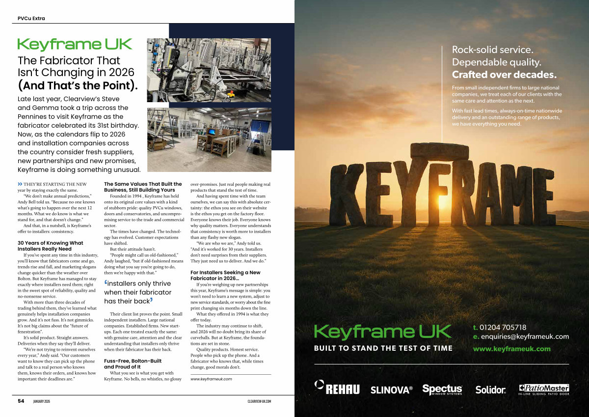 Late last year, Clearview’ s Steve and Gemma took a trip across the Pennines to visit Keyframe as the fabricator celebrated its 31st birthday. Now, as the calendars flip to 2026 and installation companies across the country consider fresh suppliers, new partnerships and new promises, Keyframe is doing something unusual.