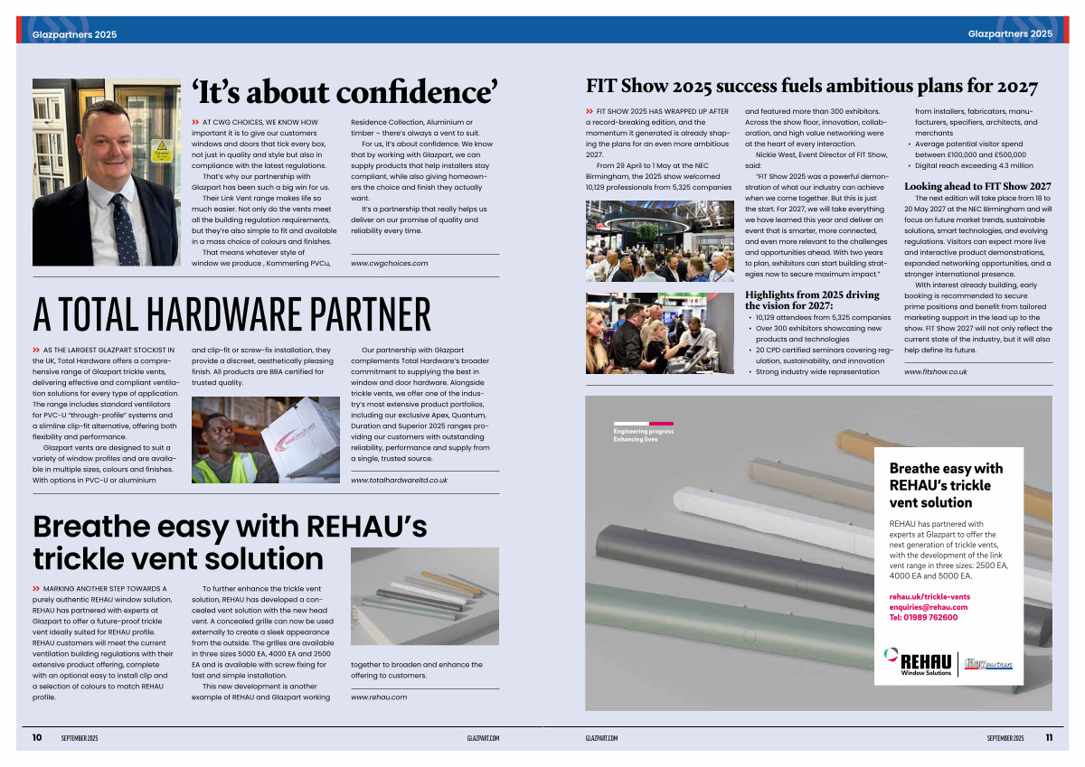 REHAU has partnered with experts at Glazpart to offer the next generation of trickle vents, with the development of the link vent range in three sizes: 2500 EA, 4000 EA and 5000 EA.