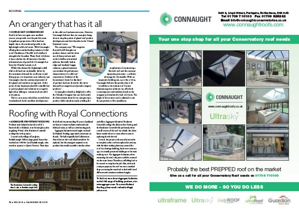 CONNAUGHT CONSERVATORY Roofs Ltd has once again seen excellent year on year growth over the past few years. A significant proportion of this has been largely due to the continued growth in the lightweight solid roof sector. With Connaught offering three market leading variants of solid roof; Ultraframes, Ultra380 and LivinRoof, alongside the Guardian Warm Roof, it believes it has a solution for all situations. Another substantial area of growth for Connaught has been the Ultrasky Lantern roof.