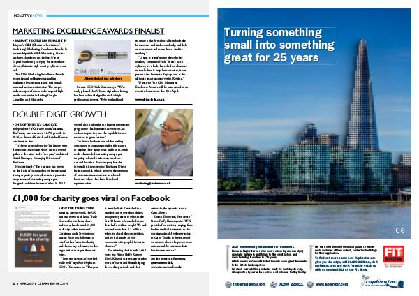 He continued:“ The business has grown on the back of sustainable new business and strong organic growth, thanks to a proactive programme of marketing campaigns, designed to deliver increased sales. In 2017 we will also undertake the biggest investment programme this business has ever seen, as we look to put in place the capabilities and resources to grow further.”