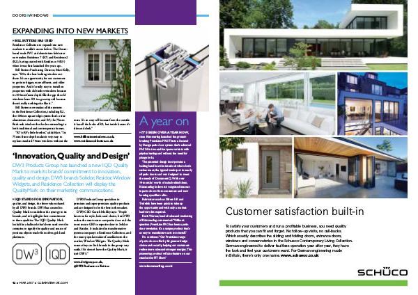 BILL BUTTERS HAS USED Residence Collection to expand into new markets it couldn’ t access before. The Dorsetbased trade PVC and aluminium fabricator now makes Residence 7( R7) and Residence2( R2), having started with Residence 9( R9) when it was first launched five years ago.