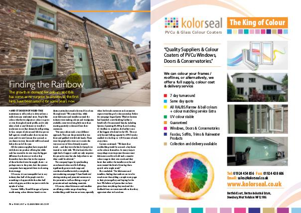 AND IT DOES NOT NEED THE statisticians to tell us what is obvious from a walk down any residential street. People like colour, whether woodgrain or colour on grain or even through-coloured profile, and it only takes a look at any fabricator or installer’ s stockroom to see that demand is still growing. In fact, output of colours and foils has put on half again in overall market share in just two years and it is now forecast that as much as one frame in every three sold will be coloured before the end of the year.