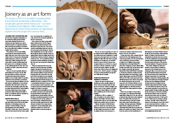 The success of PVC-U is its ability to emulate timber frames. But the fundamental craftsmanship – that actually gives genuine timber frames soul – can never be mimicked, insists Mighton’ s Mike Derham. He is determined to ensure timber products are appreciated, together with the people who produce them.