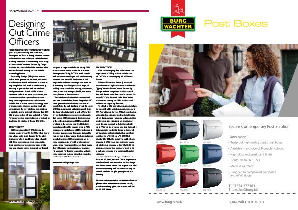 DESIGNING OUT CRIME OFFICERS( DOCOs), work closely with architects, developers and local authority planners on newbuild developments and major refurbishments to design out crime at the drawing board stage. In this issue of Clearview, Secured by Design provides the theory behind the initiative, while Warrior Doors helps explain some of the practical application …