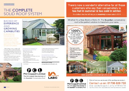 When looking to source a complete solid roof system solution, retailers and installers are increasingly enjoying the many benefits of buying from the UK’s largest manufacturer of the Guardian conservatory roof, Phil Coppell Limited (PCL). PCL customers benefit from its experience and ability to provide a product from a committed factory unit in Bolton that has recently grown by another 10,000 sqft.