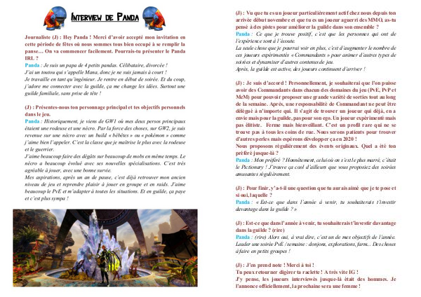 Journaliste (J) : Hey Panda ! Merci d’avoir accepté mon invitation en