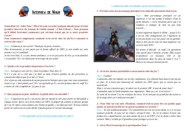 première interview du Journal de Guilde nommé « Click’n’Read ». Nous pensions