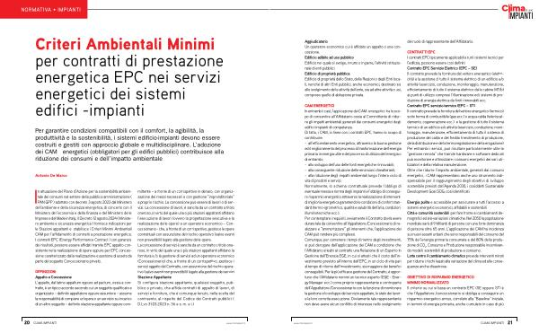 Criteri Ambientali Minimi per contratti di prestazione energetica EPC nei servizi energetici dei sistemi edifici-impianti