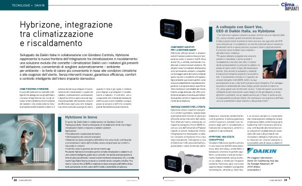 • Controllo smart e gestione da remoto tramite app Peculiarità: Hybrizone è innovativo perché connette climatizzatori e radiatori in un unico sistema intelligente, gestito da un controller che decide automaticamente la fonte di calore più efficiente. I sensori evoluti monitorano temperatura, CO 2 e umidità, mentre l’ app Daikin Onecta consente un controllo remoto completo e intuitivo. Può ridurre i consumi fino al 48,8 % e migliorare la classe energetica dell’ edificio di due livelli, aumentando comfort, valore dell’ immobile e sostenibilità complessiva.