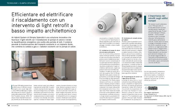 “ Gli studi più recenti evidenziano come il 75 % degli edifici in Europa abbia bisogno di essere energeticamente riqualificato” – spiega Davide Raccagni, Product Innovation Manager di Olimpia Splendid –“ Come produttori di pompe di calore, tecnologia chiave per l’ efficientamento e l’ elettrificazione dell’ ambiente costruito, il nostro lavoro di ricerca e sviluppo è focalizzato sul tema del retrofit e soprattutto su quei contesti in cui l’ applicazione delle pompe di calore è maggiormente complessa. Air Hybrid System di Olimpia Splendid è una soluzione particolarmente strategica: con una semplice aggiunta( add-on) l’ intervento di efficientamento ed elettrificazione diventa accessibile ed immediato, eppure estremamente concreto ed efficace”.