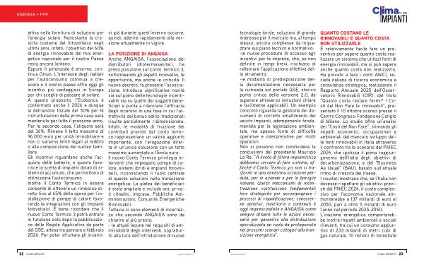 its • hvac tecnologie ibride, soluzioni di grande interesse per il mercato ma, al tempo stesso, ancora complesse da inquadrare sul piano tecnico e normativo;-le nuove procedure di accesso agli incentivi per le imprese, che, se non definite in tempi brevi, rischiano di rallentare l’ applicazione effettiva dello strumento;-le modalità di predisposizione della documentazione necessaria per la richiesta sul portale GSE, storico punto critico della versione 2.0, da superare attraverso istruzioni chiare e facilmente applicabili. Un esempio concreto riguarda la gestione dei documenti di corretto smaltimento dei vecchi impianti, adempimento fondamentale per la legislazione ambientale, ma spesso fonte di difficoltà operative e interpretative per molti operatori. Non si possono non condividere le conclusioni del presidente Maurizio Lo Re:“ A livello di filiera impiantistica dobbiamo cercare di fare sistema, affinché il Conto Termico 3.0 non si trasformi in una ennesima occasione perduta, per le aziende e per le famiglie italiane. Questi meccanismi di incentivazione costituiscono fondamentali leve strategiche per accompagnare i processi di riqualificazione: conoscerne obiettivi, traiettorie e contenuti è oggi imprescindibile e ANGAISA come sempre attuerà tutte le azioni necessarie per garantire alla distribuzione specializzata un ruolo da protagonista nei prossimi scenari collegati alla transizione energetica”.