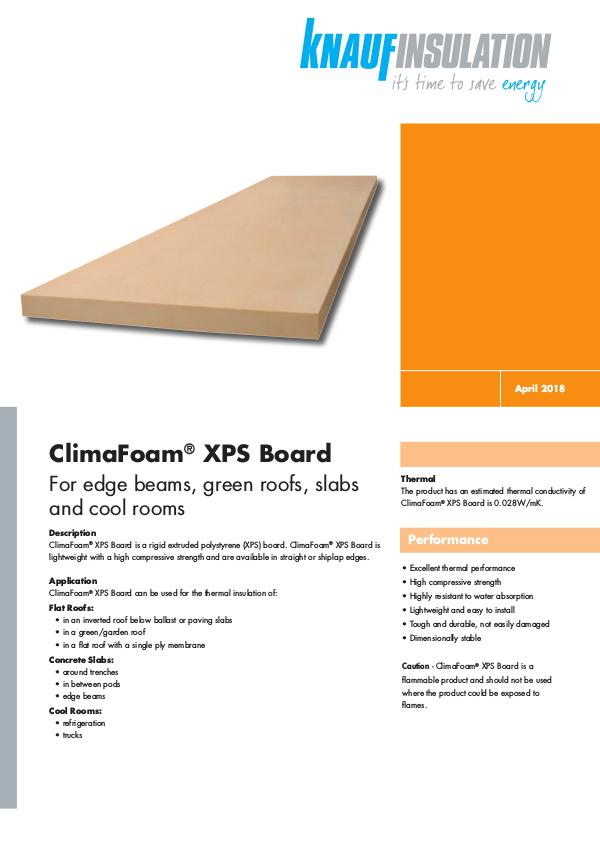 ClimaFoam ® XPS Board is 0.028W/mK.