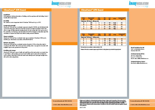 ClimaFoam ® XPS Board has an estimated water vapour resistivity of ClimaFoam ® XPS Board is