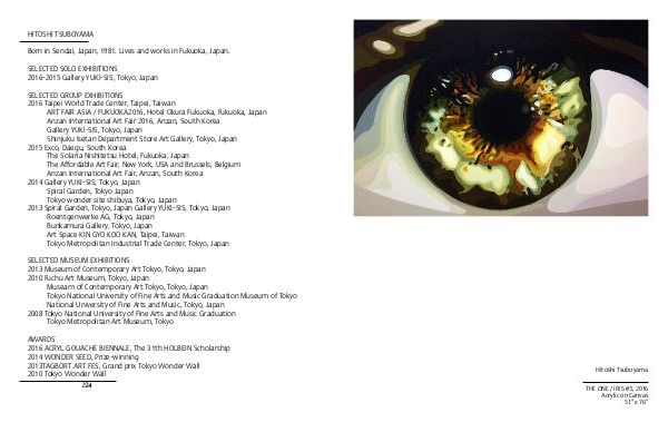 2016 Taipei World Trade Center, Taipei, Taiwan ART FAIR ASIA / FUKUOKA2016, Hotel Okura Fukuoka, Fukuoka, Japan Anzan International Art Fair 2016, Anzan, South Korea Gallery YUKI-SIS, Tokyo, Japan Shinjuku Isetan Department Store Art Gallery, Tokyo, Japan