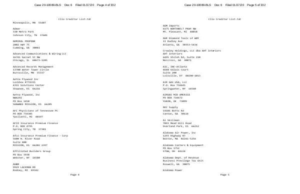 Clio Holdings Bankruptcy 2020 List of creditors | Page 5
