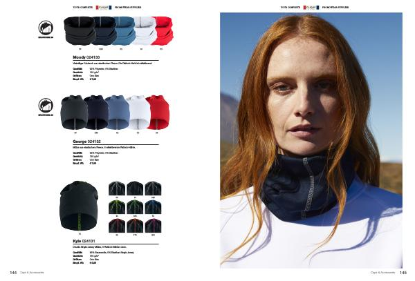 Mütze aus elastischem Fleece . 6 reflektierende Flatlock-Nähte . | |